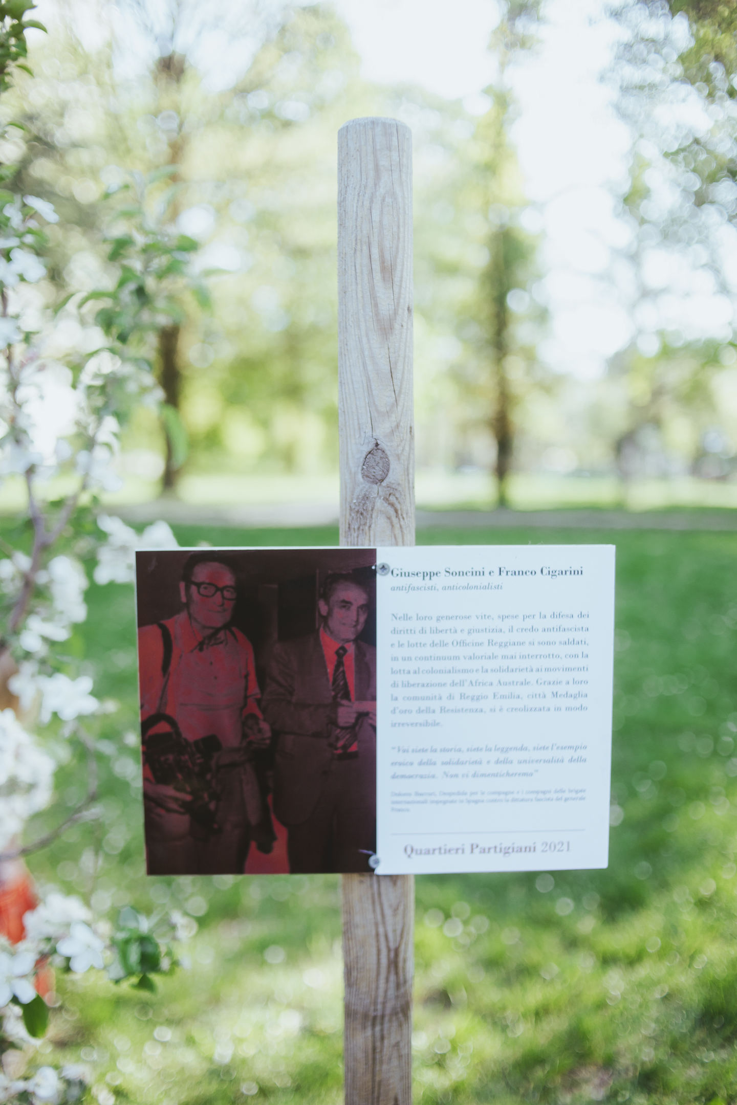 A Reggio Emilia gli Arbegnuoc Urbani hanno festeggiato il 24 aprile, giorno della liberazione della città dal nazifascismo, ricordando insieme ad altre realtà del territorio le storia di Giuseppe Soncini e Franco Cigarini, due partigiani che negli anni Settanta che hanno legato i valori della Resistenza alla solidarietà internazionale. Di fronte alla statua di Oliver Tambo con l’aiuto di Chiara Torcianti di Istoreco abbiamo raccontato la storia di persone che nel segno dell’antifascismo hanno unito la lotta partigiana e il movimento di liberazione anticoloniale. Il tutto accompagnato dalle installazioni artistiche di Kokedama Blues, dalla musica dell’Orchestrina Instabile e del coro dell’Amata Rossa di Casa Bettola, da lettura di poesie e piantumazione di alberi.