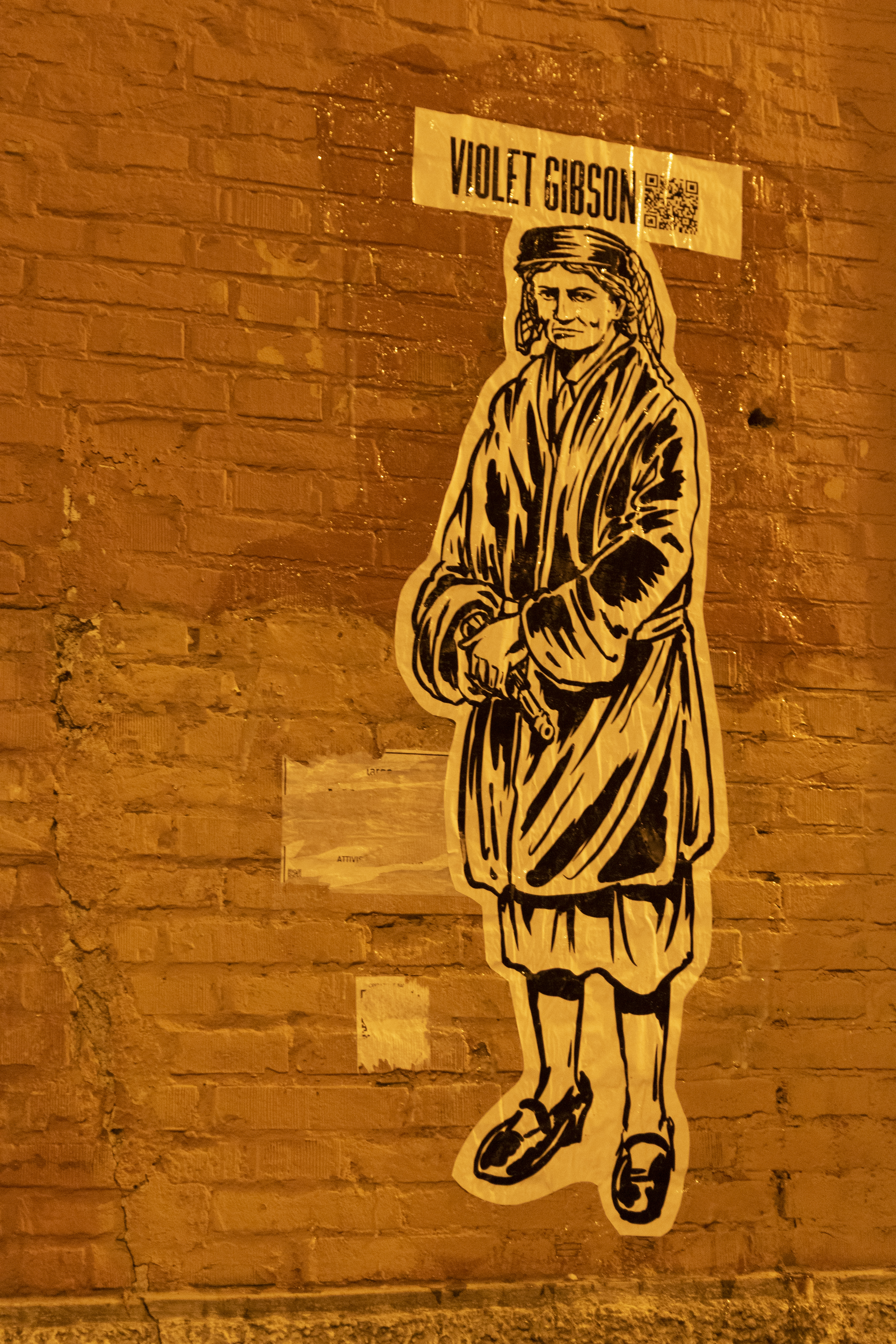 Il 25 aprile, invece, il fantasma di Violet Gibson è apparso su una delle colonne dell’isolato San Rocco, poco distante da dove Mussolini tenne un discorso durante una sua visita a Reggio Emilia. Pistola in mano a ricordare ciò che poteva essere.