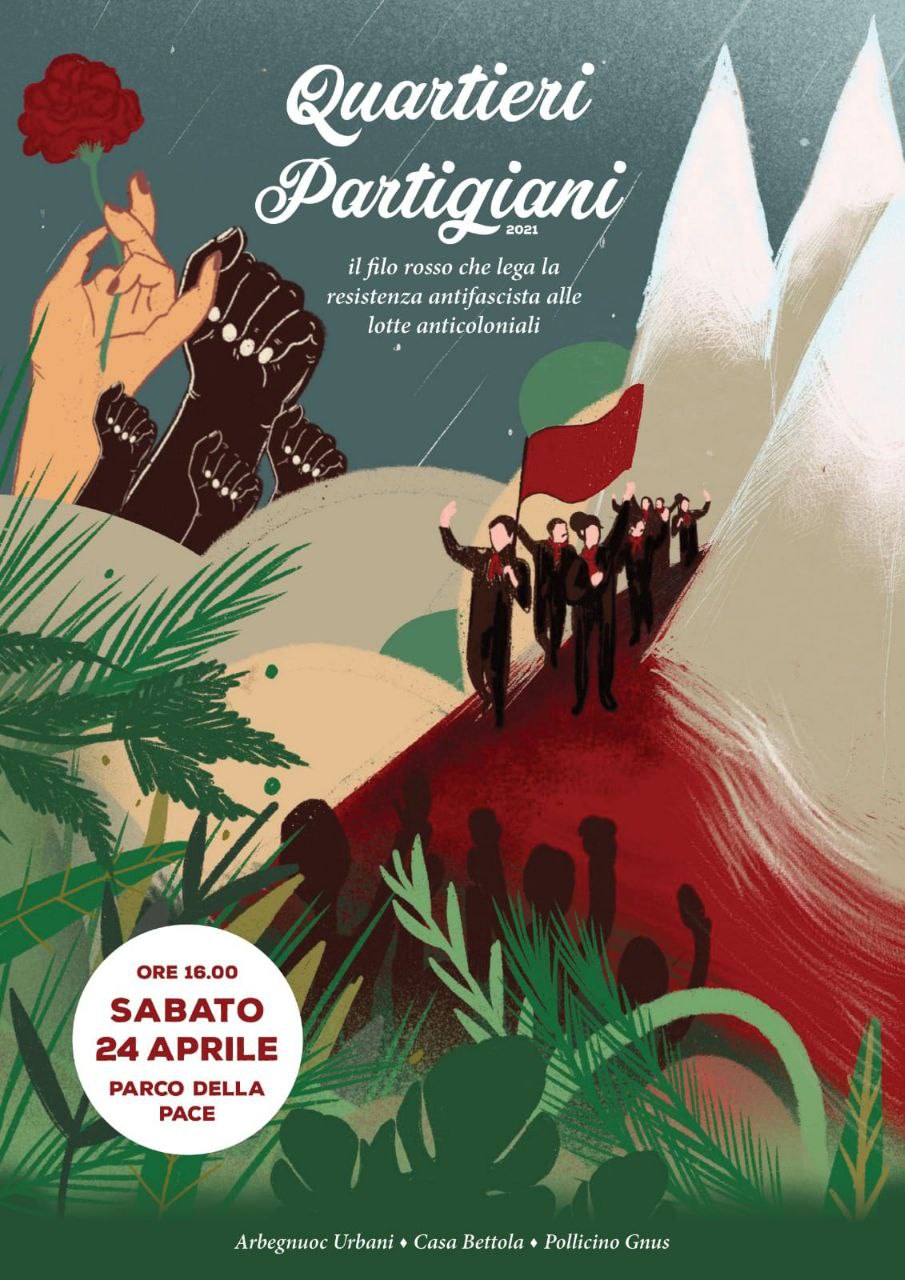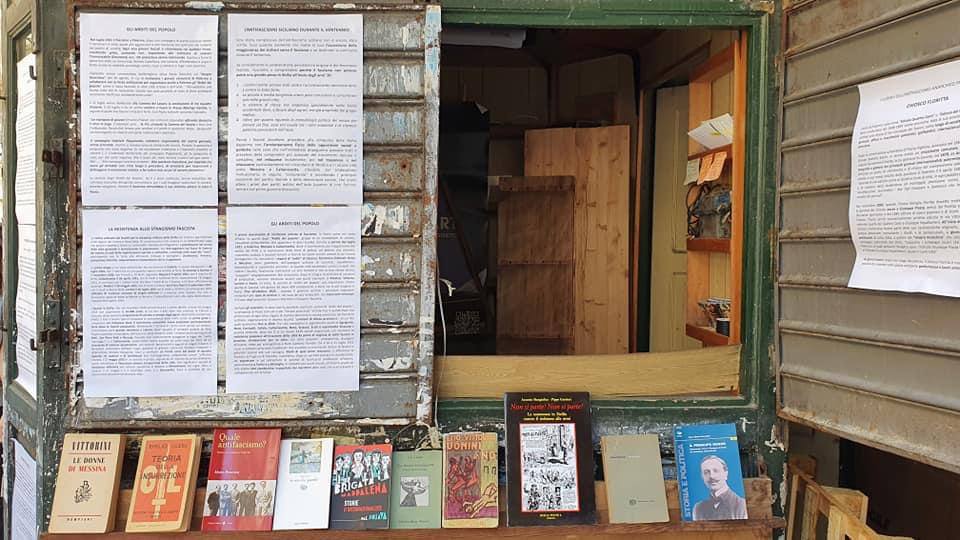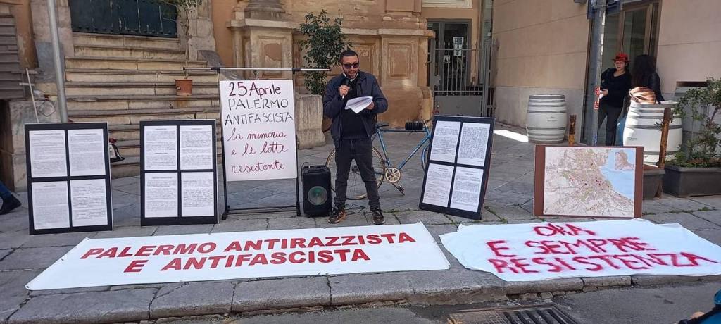 A Palermo, il 25 aprile la Rete Anticoloniale Siciliana, con il Forum Antirazzista Palermo e l’Assemblea Anarchica Palermitana, ha realizzato diversi interventi di guerriglia odonomastica per smascherare la presenza in città di strade, piazze e monumenti che ancora oggi celebrano il passato fascista e coloniale italiano e hanno organizzato un presidio dal vivo per raccontare queste azioni e ricordare alcuni eventi, luoghi e personaggi legati alla Palermo resistente e antifascista. Luogo del presidio è stata l’ex-edicola dei Quattro Canti, storico centro di divulgazione di stampa internazionalista, anarchica e socialista che sorge in uno dei luoghi più importanti della città e che ha visto nel corso dei secoli avvicendarsi manifestazioni operaie, antifasciste e anticoloniali. Il giorno della Liberazione l’edicola è diventata luogo di informazione e narrazione di queste storie e lotte resistenti e occasione per dare vita a un rituale collettivo per esorcizzare, nel giorno della Liberazione, gli spettri fascisti che infestano la città. Dopo il presidio all’ex edicola, il Forum Antirazzista, con l’adesione della Rete Anticoloniale Siciliana e di tante associazioni e collettivi della città ha organizzato ai Quattro Canti una manifestazione per svegliare la coscienza d’Europa sulle persone migranti lasciate morire dopo l’ennesima richiesta di soccorso ignorata per miserabile scelta politica e colpevole indifferenza.