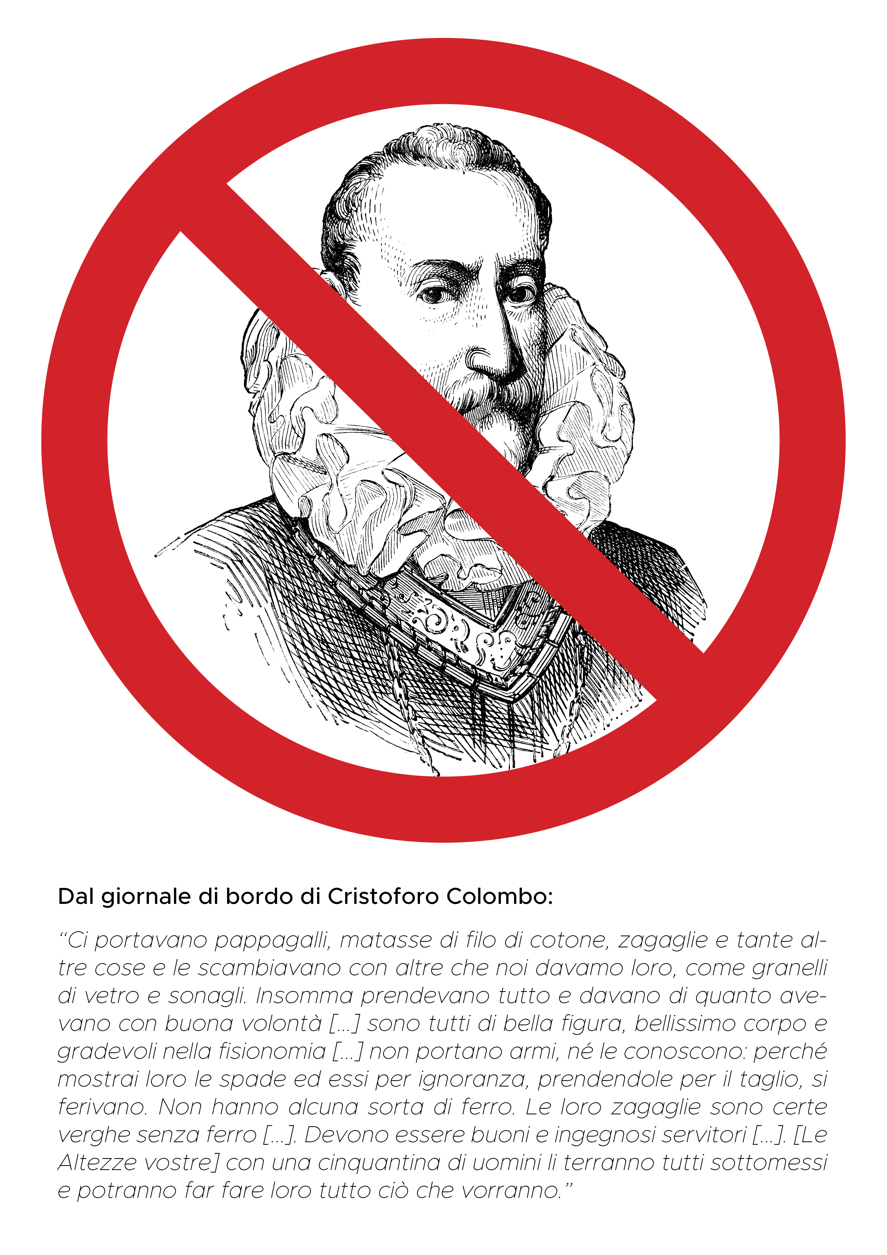 Condannando la tutt’altro che gloriosa impresa di Colombo e il suo modus operandi da violento colonizzatore, vogliamo far emergere quello che la sua figura simboleggia per l’Occidente: l’accumulazione selvaggia ai danni di altri popoli giudicati inferiori, lo stupro e la violenza sistematica contro le donne, con la quale i conquistatori trasformarono i corpi femminili in territori devastabili. Sulle basi poste da questo saccheggio di terre e corpi è nato il sistema economico vigente, il capitalismo, e si è imposto il sistema sociale e di relazioni patriarcali.