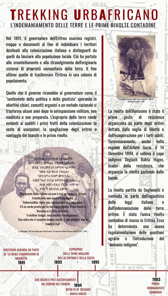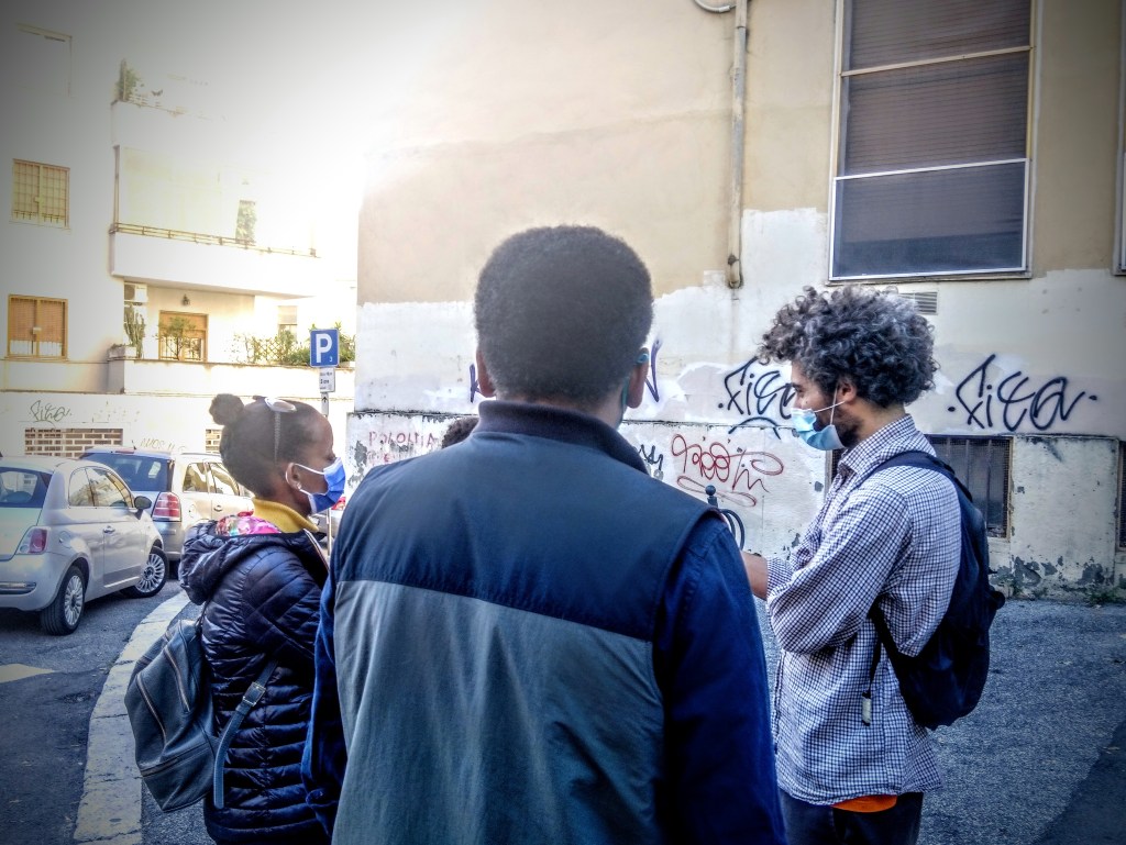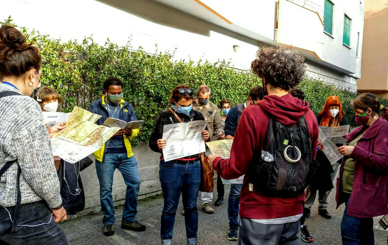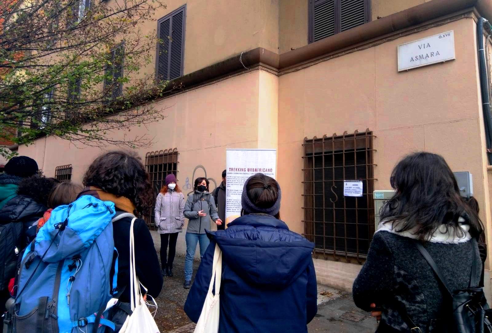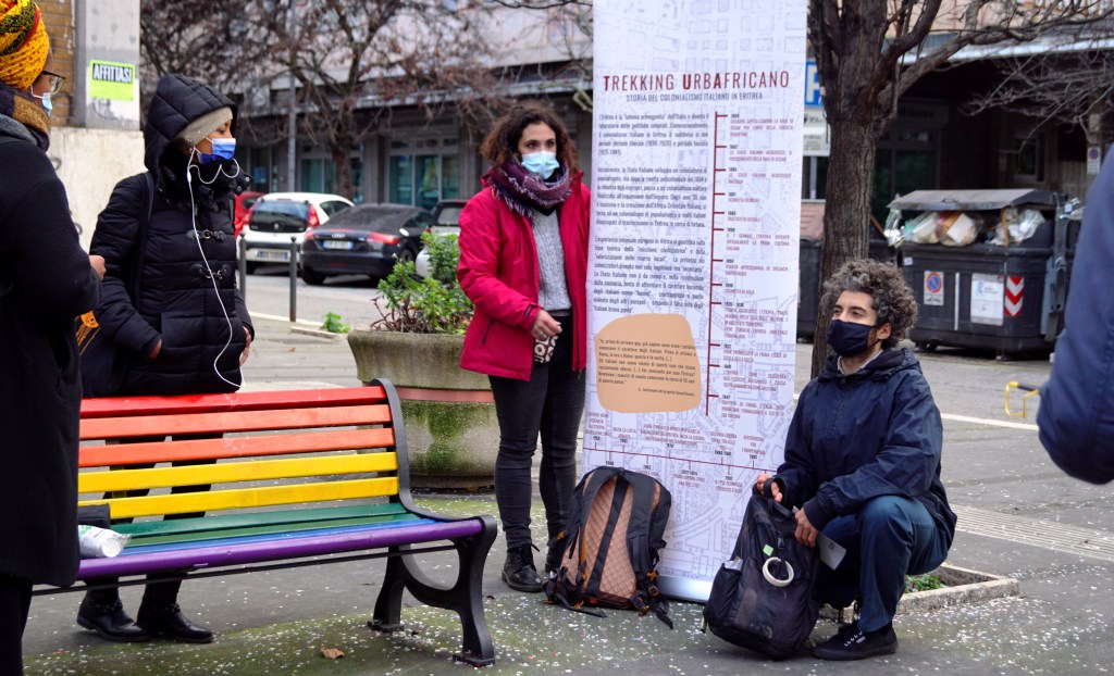 Il Trekking UrbAfricano è un percorso che si snoda attraverso l’odonomastica coloniale del già citato quartiere africano, intrecciando testimonianze di persone eritree con tappe di contestualizzazione e approfondimento storico. La raccolta delle prime testimonianze orali è avvenuta nei mesi di ottobre, novembre e dicembre 2020 e si è svolta anch’essa nel quartiere africano, in quelle che abbiamo chiamato “passeggiate narrative”.