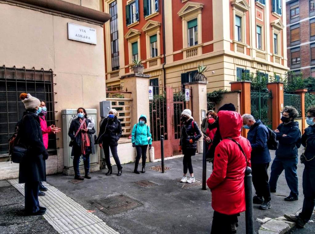 Le “passeggiate narrative” non sono altro che lunghe camminate in compagnia di persone eritree alla “ricerca” degli otto odonimi che rimandano all’Eritrea contemporanea (via Agordat, via Asmara, via Assab, via Cheren, via Dancalia, via Massaua, via Senafè, viale Eritrea) attraverso i quali parlare di storia dell’Eritrea, di legami, lasciti e ferite del colonialismo italiano nella ex-colonia “primogenita”, di migrazioni recenti e passate, e di molto molto altro ancora.