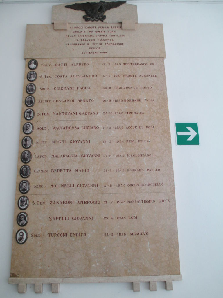 SECONDA TAPPA: LAPIDE AI CADUTI DEL COLLEGIO VESCOVILE 1940 – 45