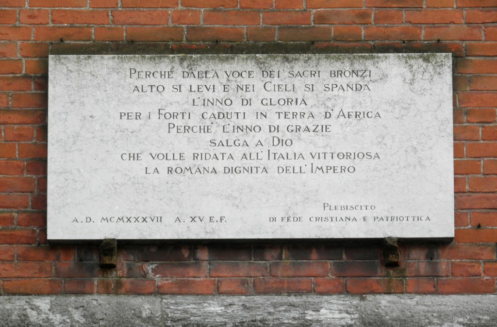 Salga a Dio che volle ridata all’Italia Vittoriosa La Romana dignità dell’Impero Plebiscito di fede cristiana e patriotticaAD MCMXXXVII – A. XV E.F.