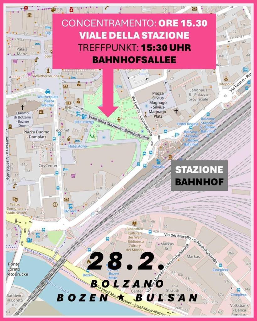 Sabato 28 febbraio – concentramento ore 15:30 in viale della Stazione a Bolzano